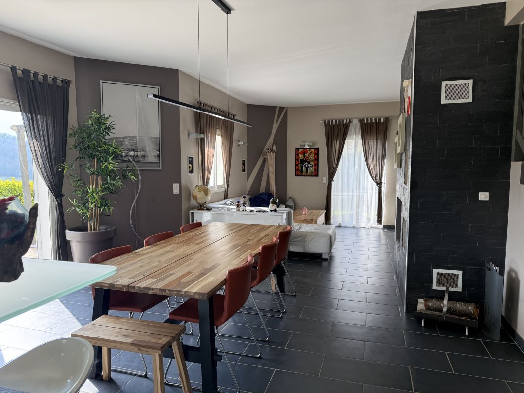 Spacieuse maison au coeur d'un lotissement paisible Frangy Immobilier a le plaisir de vous présenter cette maison pleine de charme, au sein d'un lotissement calme. Description du bien : Au rez de chaussée : Une cuisine équipée et meublée, une salle à manger, un salon séjour ouvert sur une terrasse et un jardin, un cellier, un toilette, une cave Au premier niveau : une suite parentale avec salle d'eau : Au deuxième niveau : une entrée, trois chambres dont une avec mézzanine, une salle de bains, un garage double. En annexes : Un grand jardin , une terrasse, une piscine, un hammam, Informations techniques : Diagnostics réalisés en 2026 : Énergie primaire : 226 kWh/an. Énergie finale : 8 kWh/an. Pour toute information complémentaire ou pour organiser une visite, l'équipe de Frangy Immobilier se tient à votre disposition. N'attendez plus pour découvrir ce bien unique!