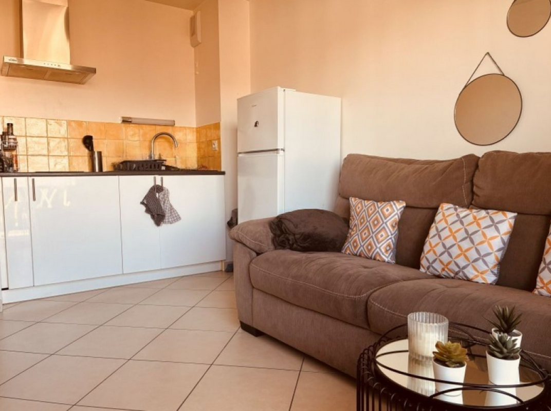 L’appartement se compose d’une entrée avec rangements, d’une cuisine indépendante ouvrant sur un balcon, d’une spacieuse chambre bénéficiant également de l’accès extérieur, d’une salle d’eau et de toilettes séparées.